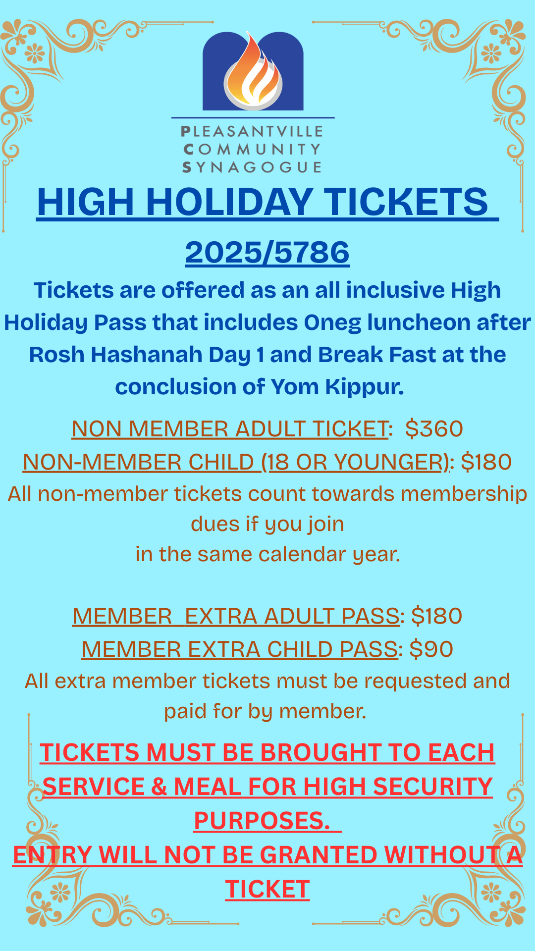 High Holiday Youth Programs are included in the PCS Tickets. Youth Programs are only available with a High Holiday All Access Pass/Ticket.