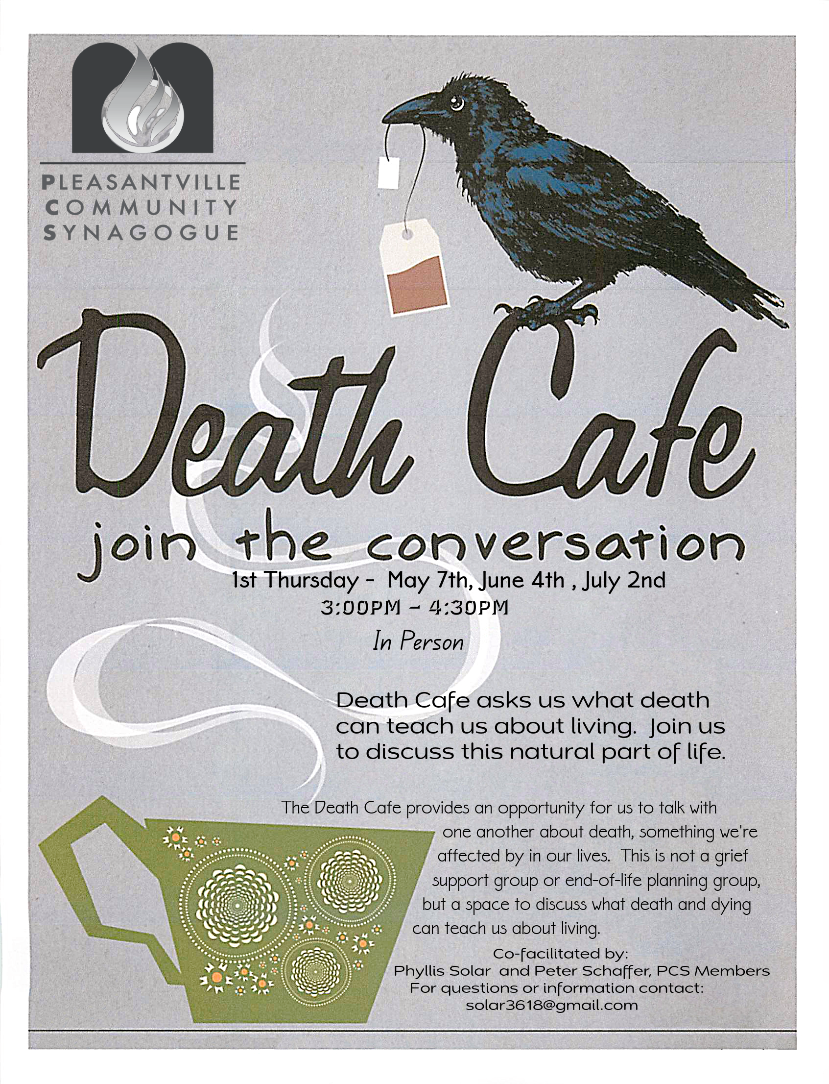 THE DEATH CAFE HAS CHANGED TO THE 1ST THURSDAY OF EACH MONTH
